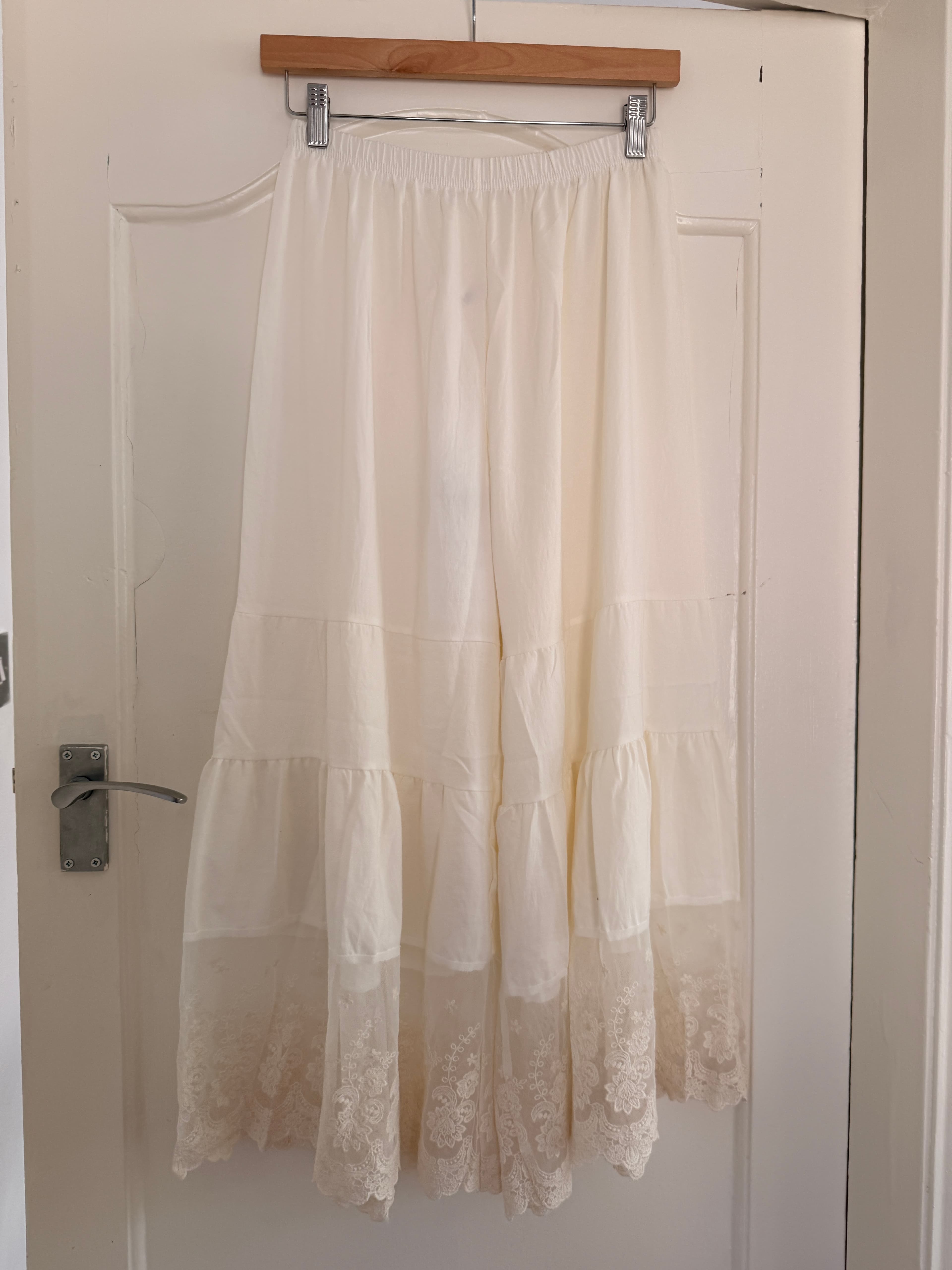 White Lace Tiered Shorts - Scalloped Ruffle Hem Coquette Style size UK8